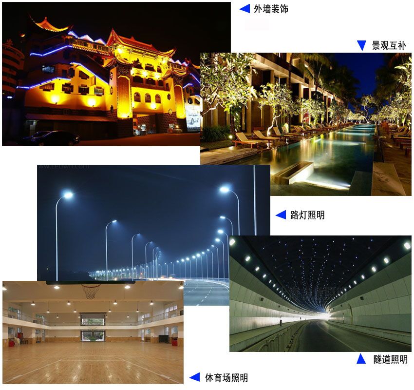 工程案例:路燈照明 隧道燈工程 體育場照明 景觀互補 外墻裝飾