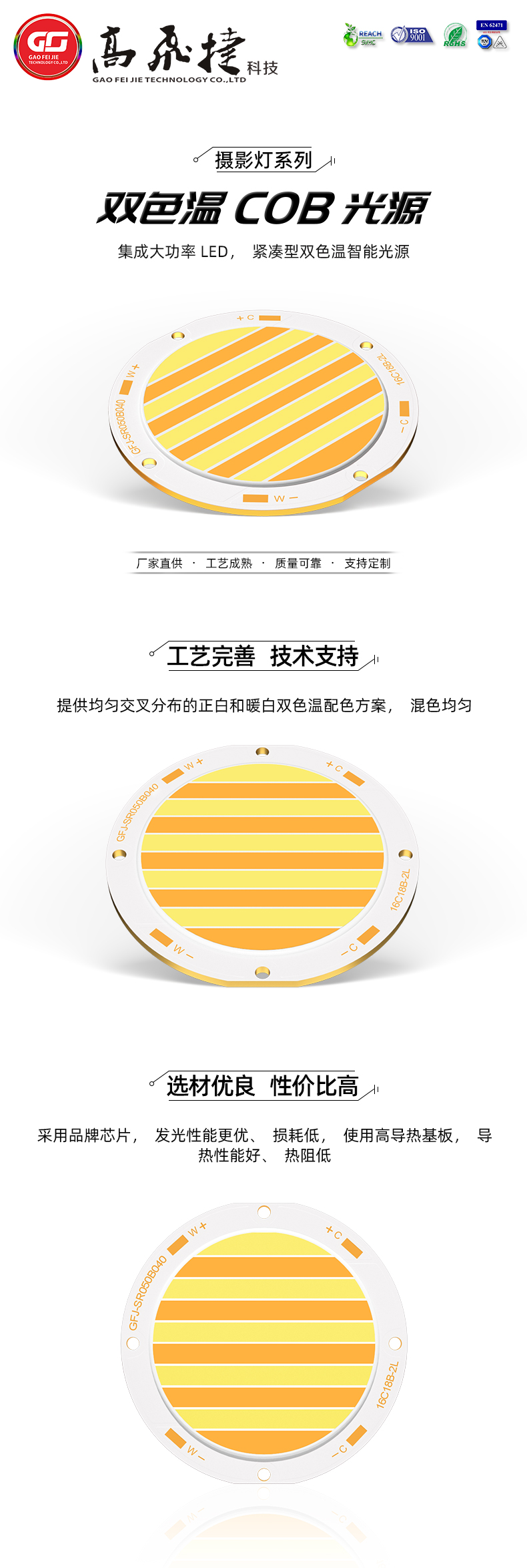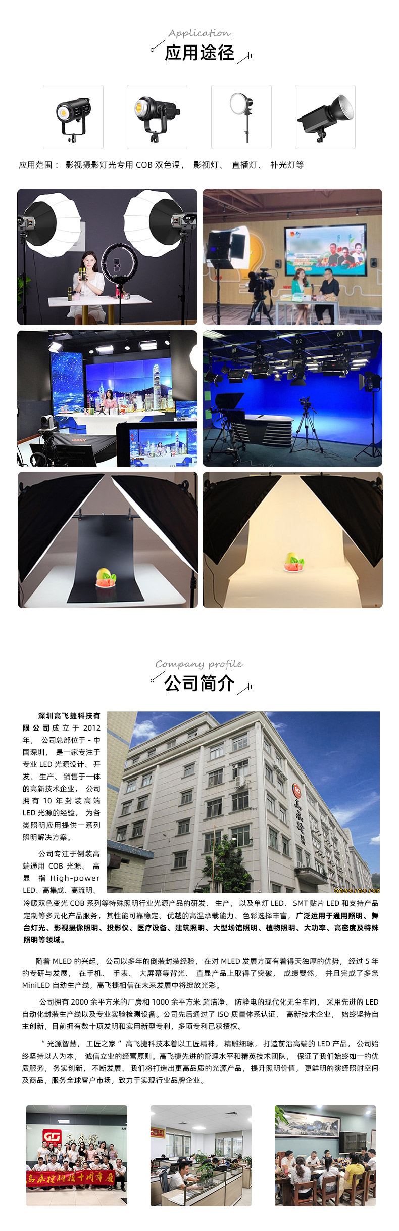 應(yīng)用:攝影燈 直播燈 補(bǔ)光燈 舞臺(tái)燈